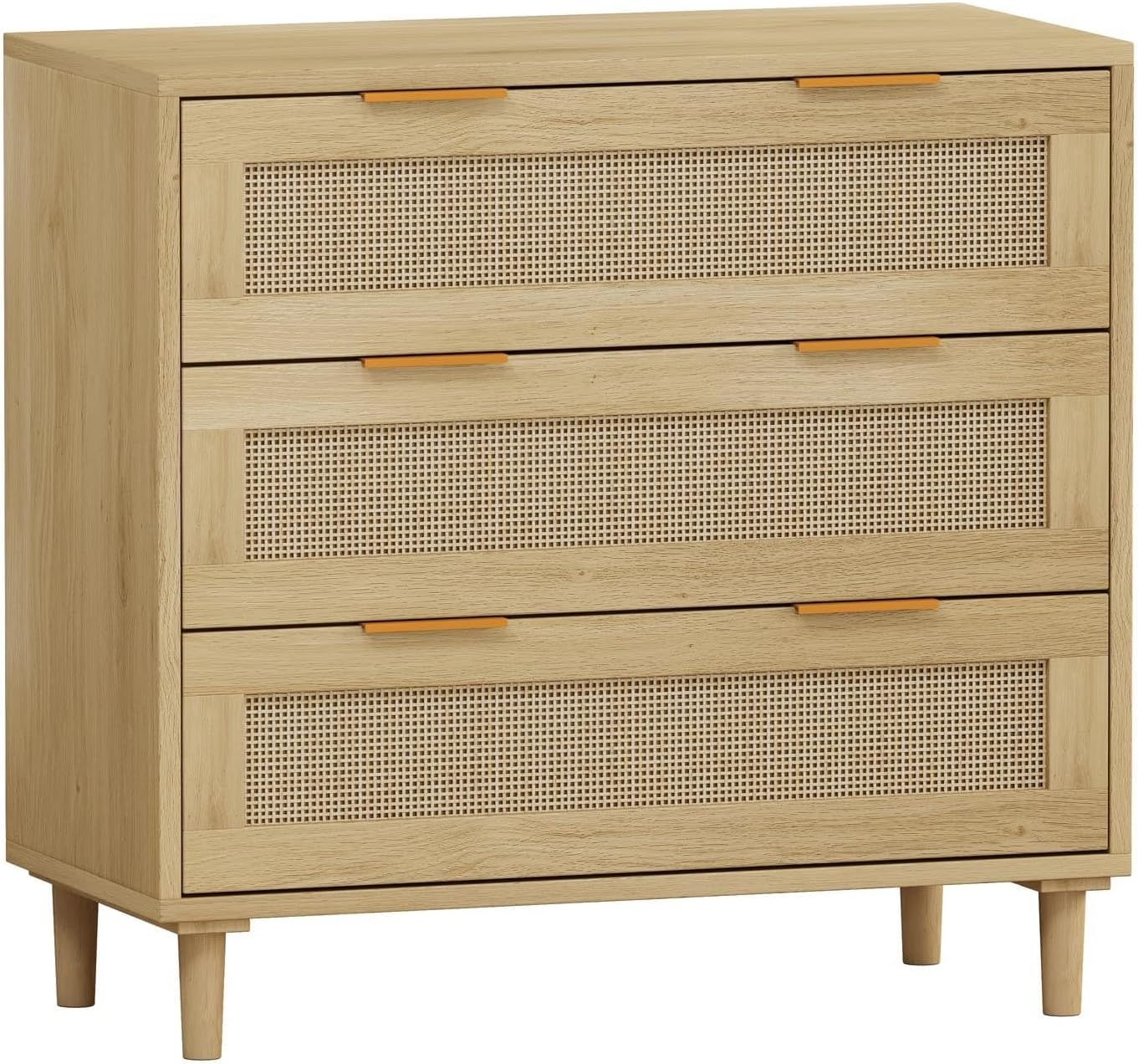 Storage Cabinet with 3 Rattan Drawers Natural Modern Contemporary MDF Oak Finish