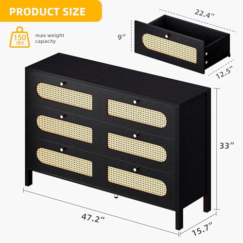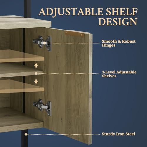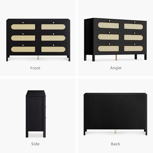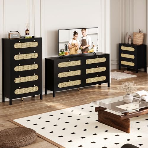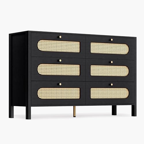 YITAHOME Rattan TV Stand up to 55'' - Boho Entertainment Center with 6 Storage Cabinet and Golden Handles - TV Media Console for Living Room/Bedroom/Office - Natural Oak