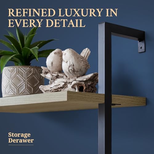 Oxford Bookshelf, Ladder 5 Tier Open Bookshelf, Tall Book Shelf with Cabinet, Wall Mount Bookshelves with Display Rack, Bookcase with Shelves for Bedroom, Living Room (Pale Oak 2 PCS)