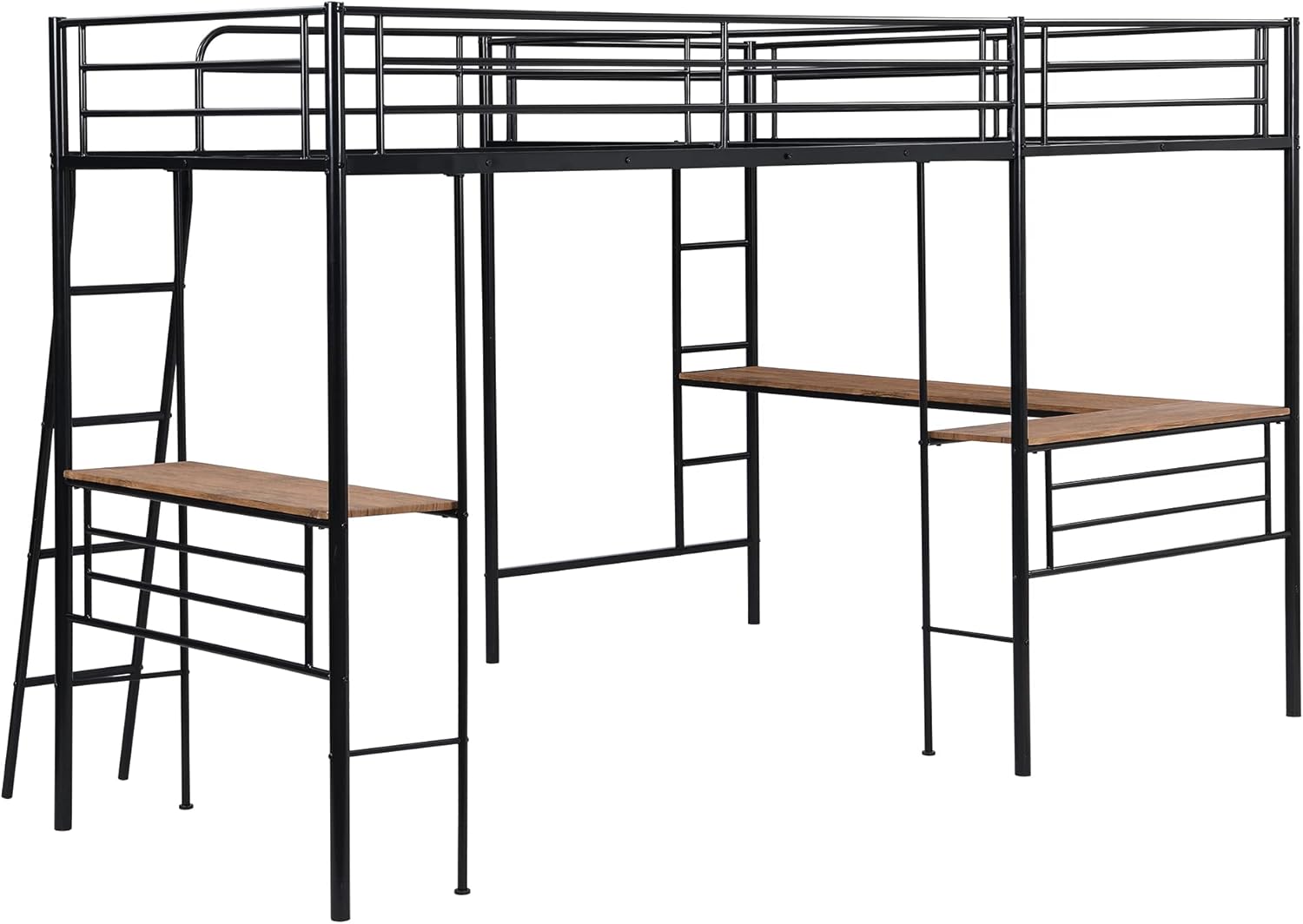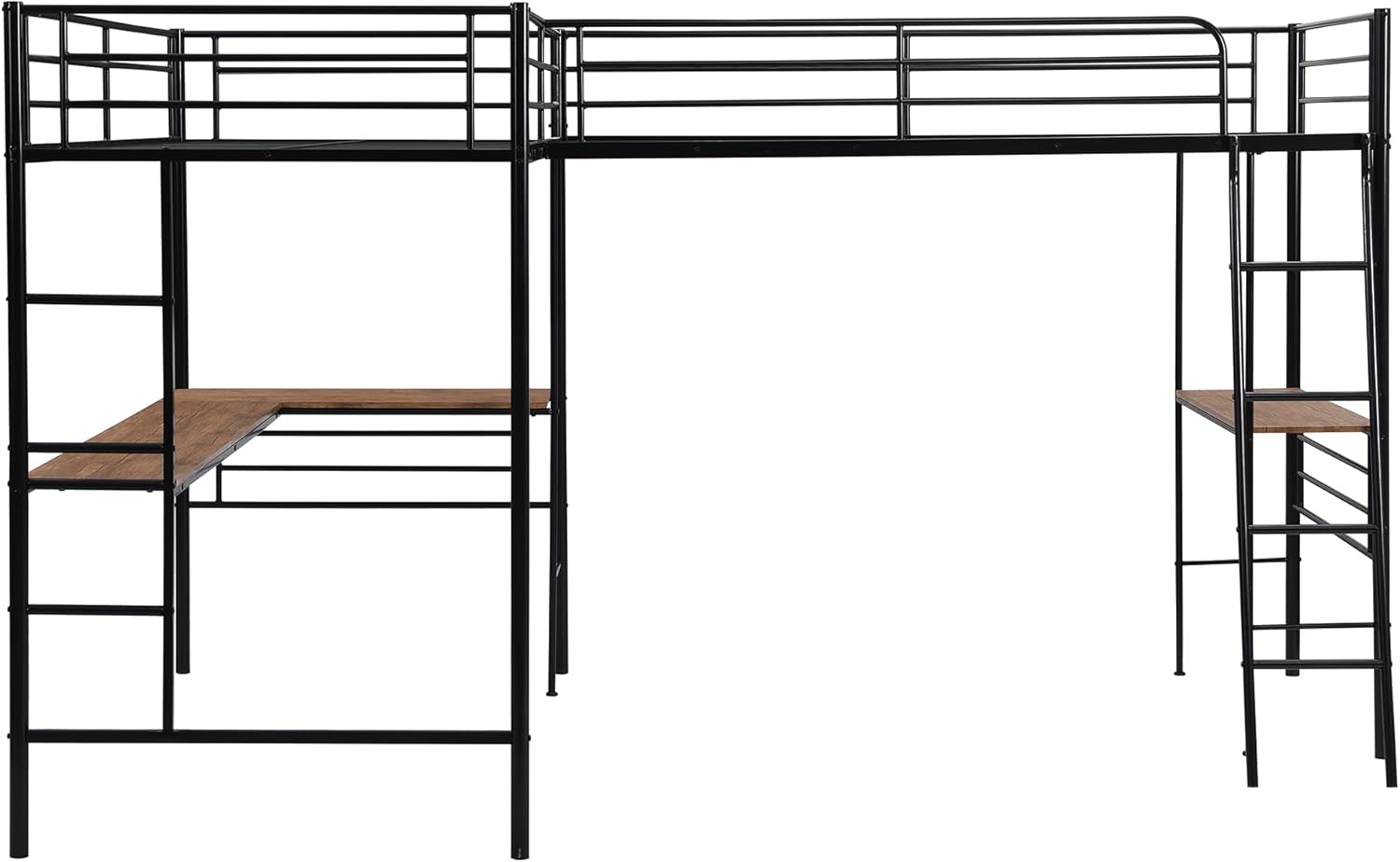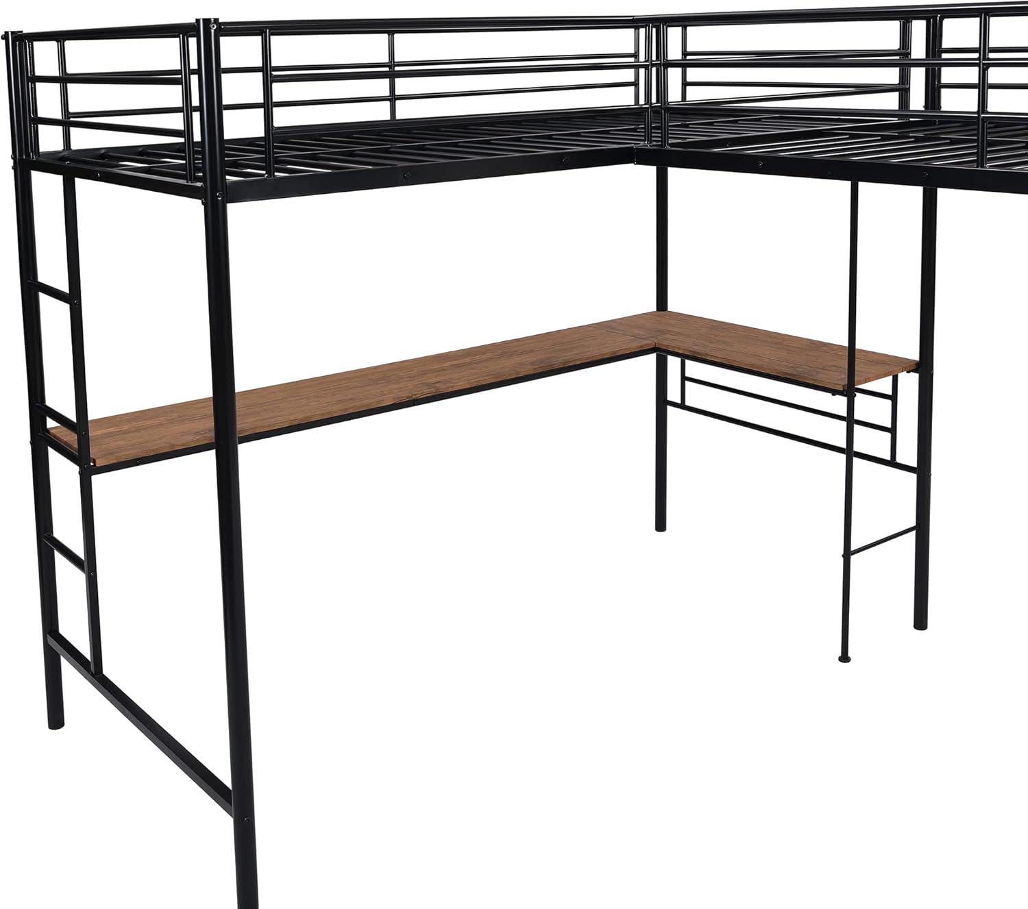 L-Shaped Metal Loft Bed for 2 Kids, 2 Loft Bed with 2 Desk, Twin Size Corner Loft Bed for Small Room(Black)