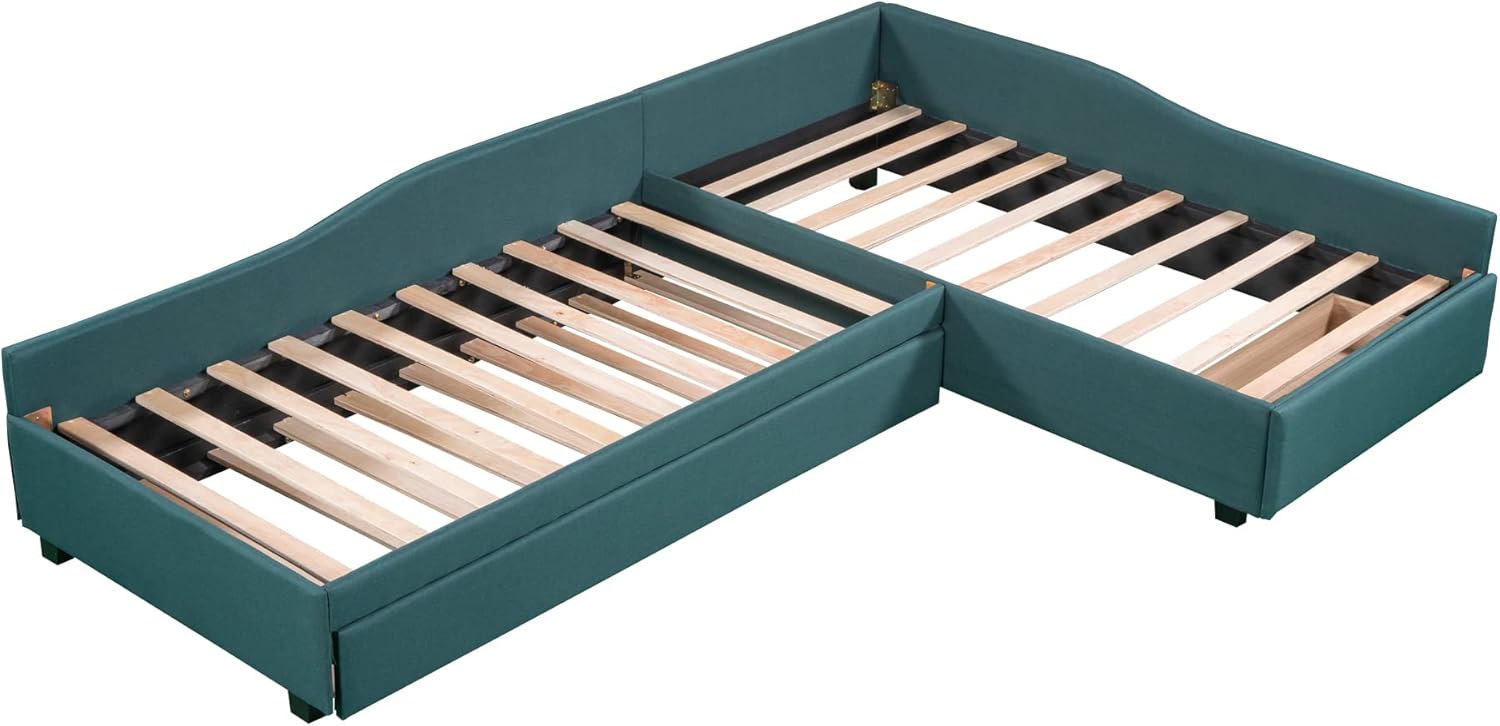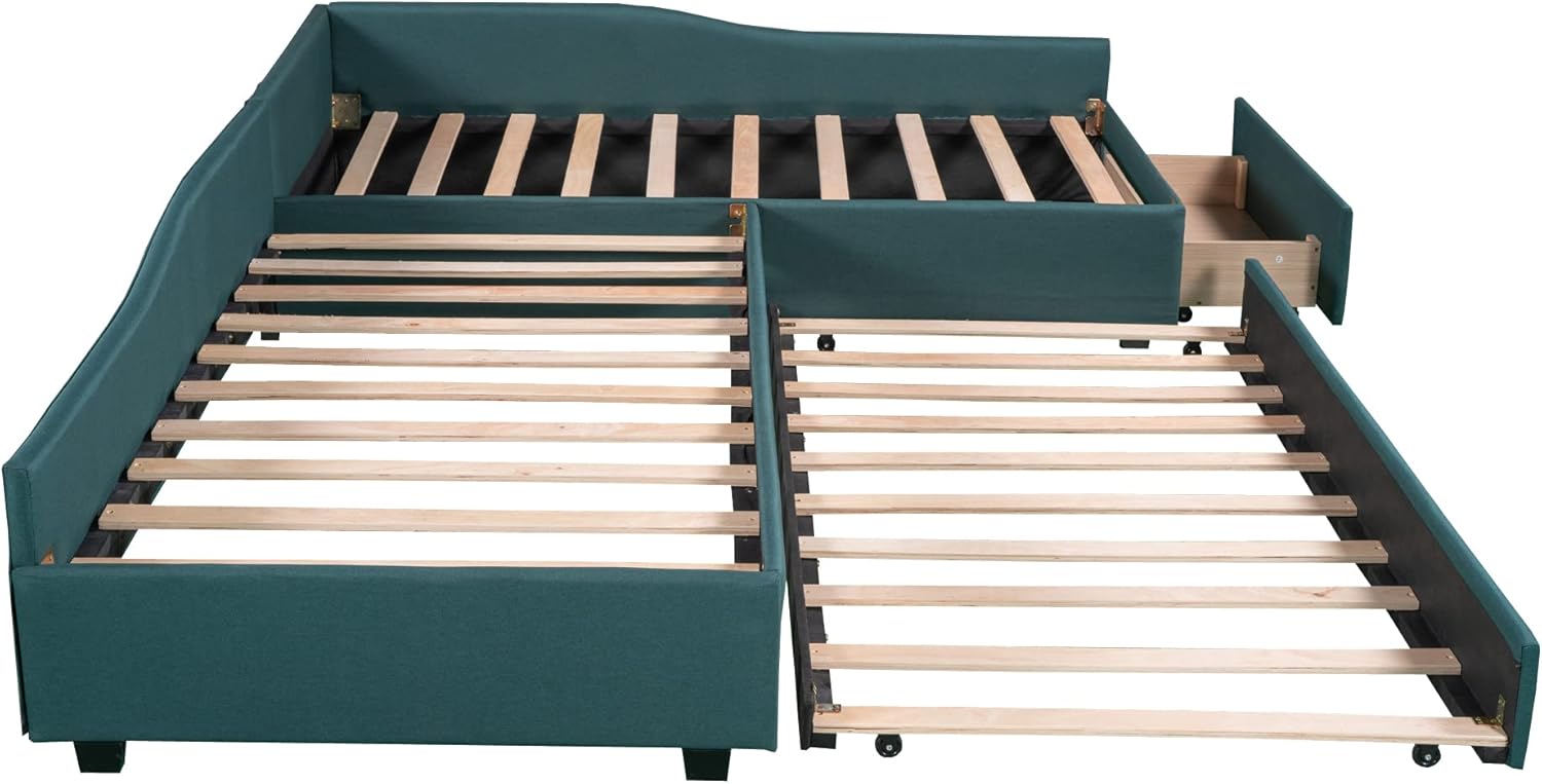 Twin L-Shaped Upholstered Daybed, Size Sofa Day Bed Frame with Trundle and Storage Drawer, Perfect for Living Room Bedroom, Green