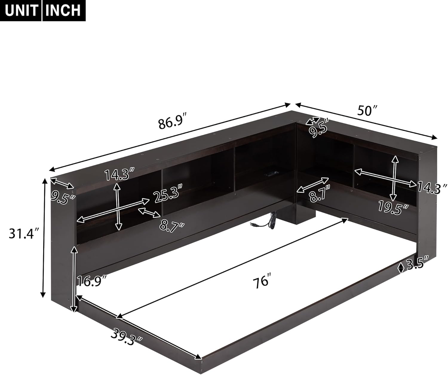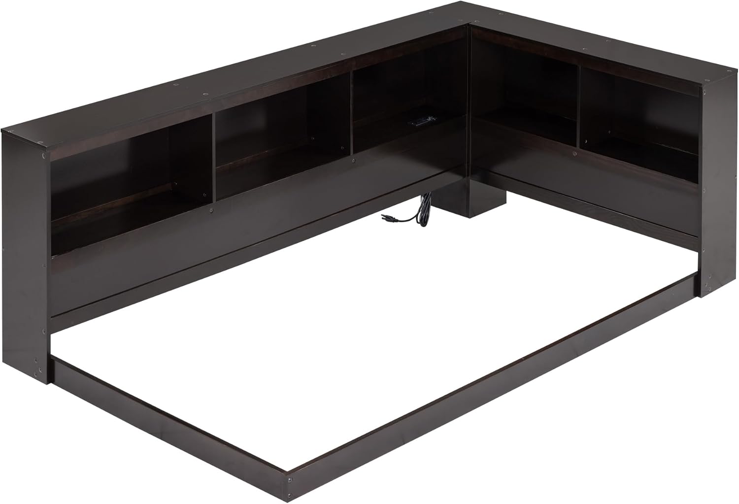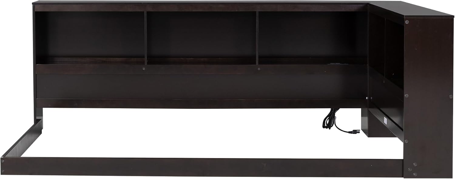 Harper & Bright Designs Twin Size Daybed, Wood Twin Bed Frame with L-Shaped Bookcases and USB Ports,Twin Floor Sofa Bed for Kids Room, Bedroom, Living Room,Espresso