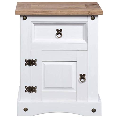 vidaXL Bedside Cabinet in Rustic Mexican 'Corona' Style, Solid Pinewood, White Body with Brown Top, Includes Drawer and Cupboard