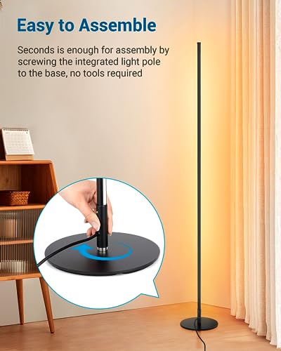 DEWENWILS LED Corner Floor Lamp, 57.5" Minimalist Dimmable Slim Light, Standing Tall Mood Lamp for Living Room, Bedroom, Office, 3000K Warm White Light (Gold)