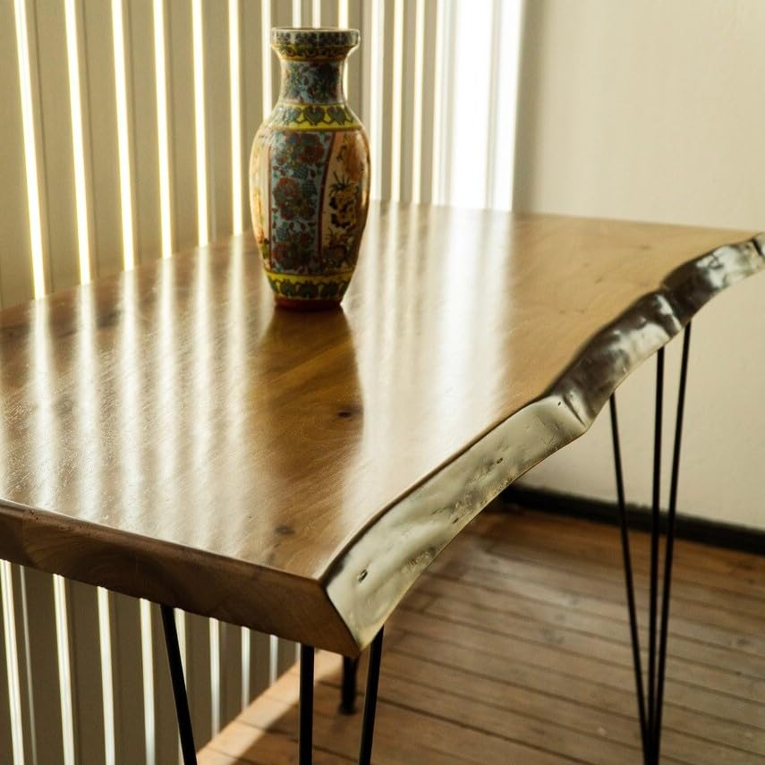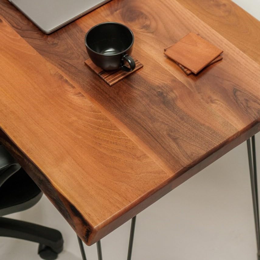 Live Edge Walnut Solid Wood Desk, Natural Computer Desk, Standing Wooden Desk, Office Furniture, Living Room Furniture, Rustic Dining Table (20" x 34" (51 cm x 87 cm))