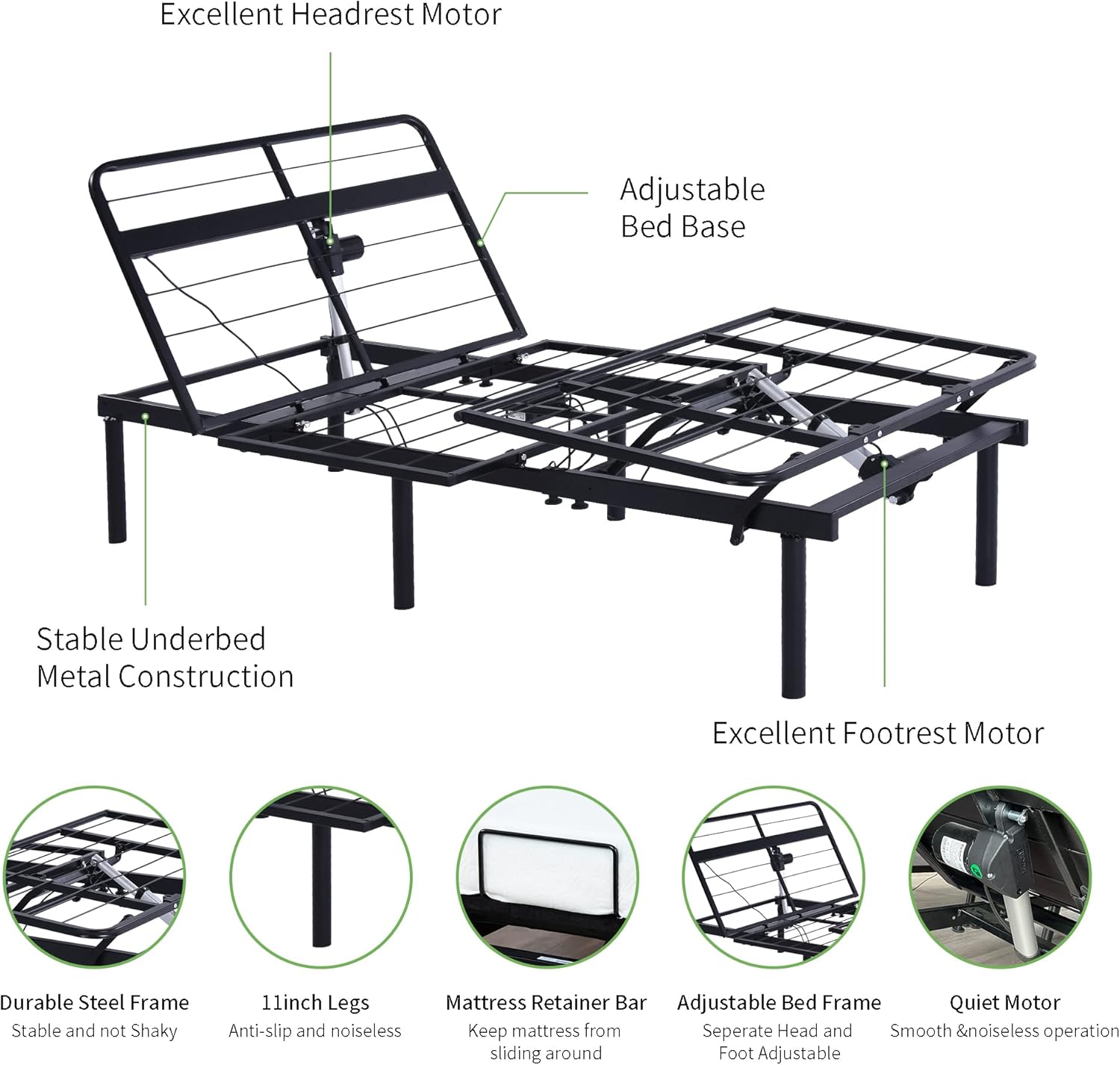 Adjustable Bed Frame Base, Wireless, 5 Minutes Quick Assembly, Zero Clearance, Zero Gravity, Whisper Quiet Durable Motor, Mattress Holder, Anti Snore, Best Gift for Family,Twin XL