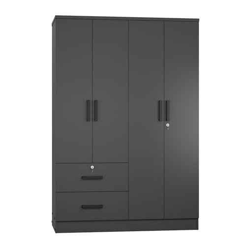 4 Doors Wardrobe 2 Drawers with Shelves 72" high (White)