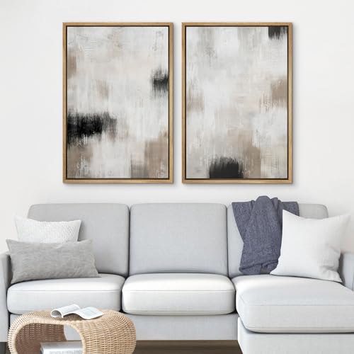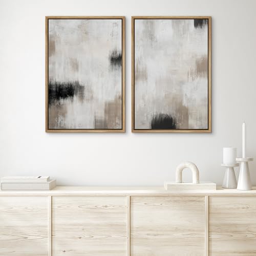 IDEA4WALL Framed Canvas Print Wall Art Geometric Gray Grunge Retro Color Blocks Abstract Shapes Illustrations Modern Art Minimal Relax/Zen for Living Room, Bedroom, Office - 24"x36" Black