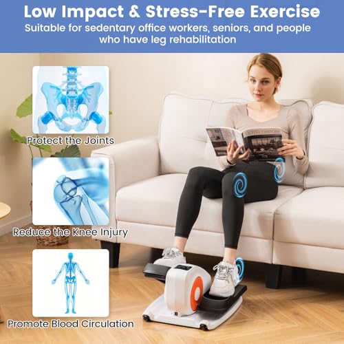 Goplus Under Desk Elliptical Machine, Electric Seated Pedal Exerciser with LED Display Monitor, Remote Control, Portable Fully Assembled Ellipse Leg Exerciser for Seniors Adults Home Office