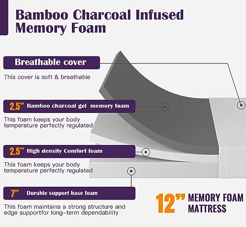PayLessHere 5 Inch Memory Foam Mattress/Cooling Gel Bamboo Charcoal Infused Mattress/Medium Firm Mattresses/CertiPUR-US Certified/Bed-in-a-Box/Pressure Relieving King Size,White