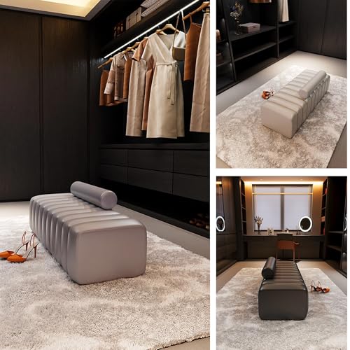 Entryway Ottoman Bench Bedroom End of Bed Bench for Front Door Entrance Living Room Balcony Hallway Closet Foyer(Off-White (PU),80cm/31.49in)
