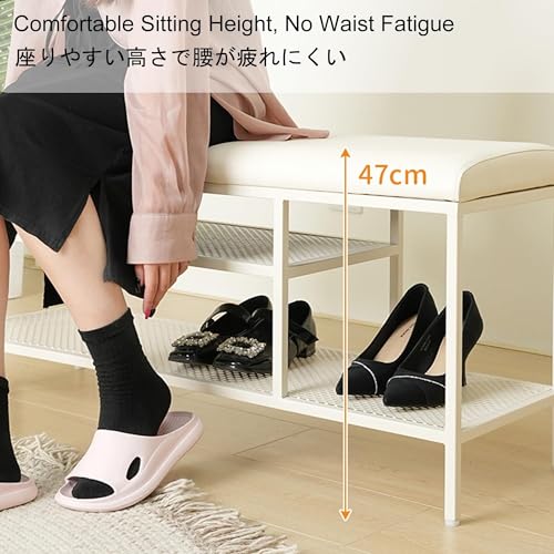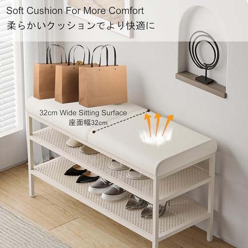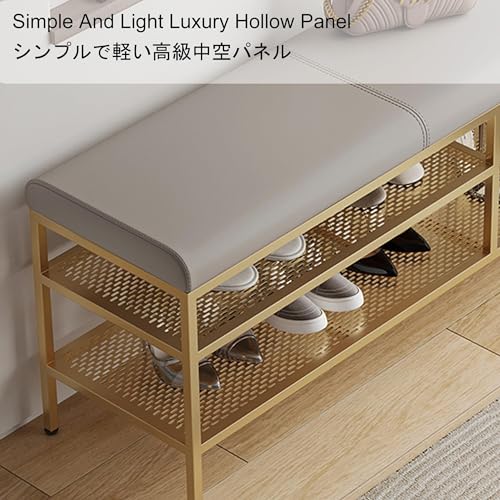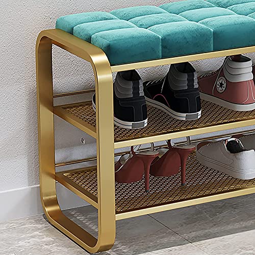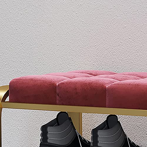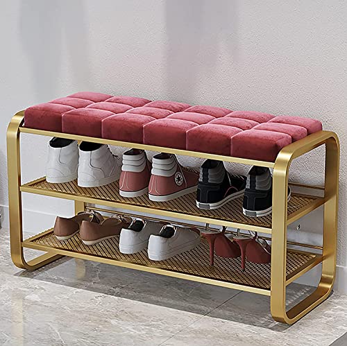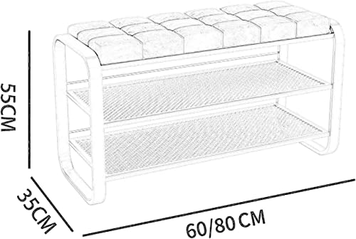 2-Tiers Storage Bench Metal Frame Shoe Rack Shelf with Padded Cushion Seat, for Closet Cloakroom Entryway Corridor (Color : C, Size : 80 * 35 * 55 cm) (C 60 * 35 * 55 cm) (A 60 * 35 * 55 cm)