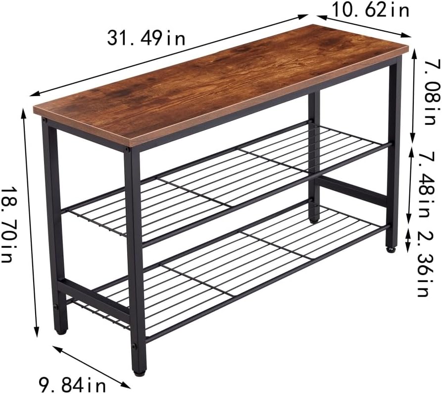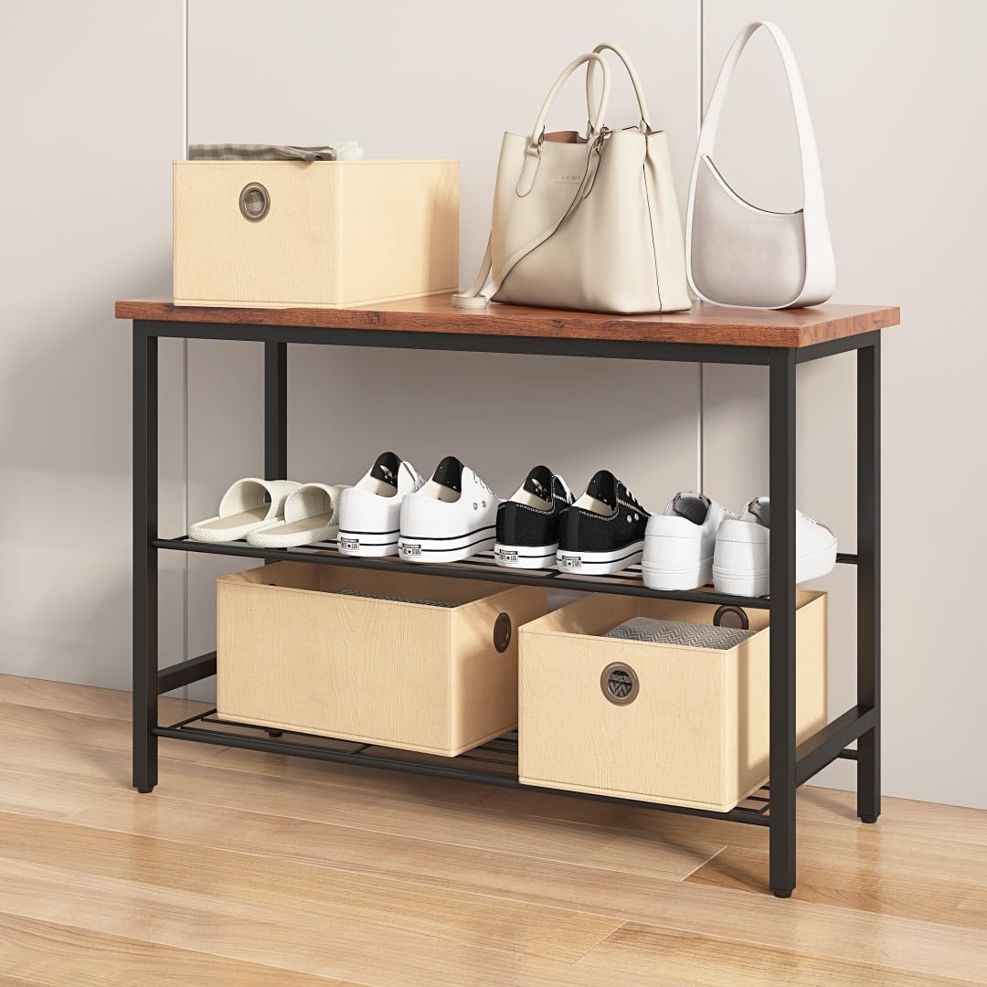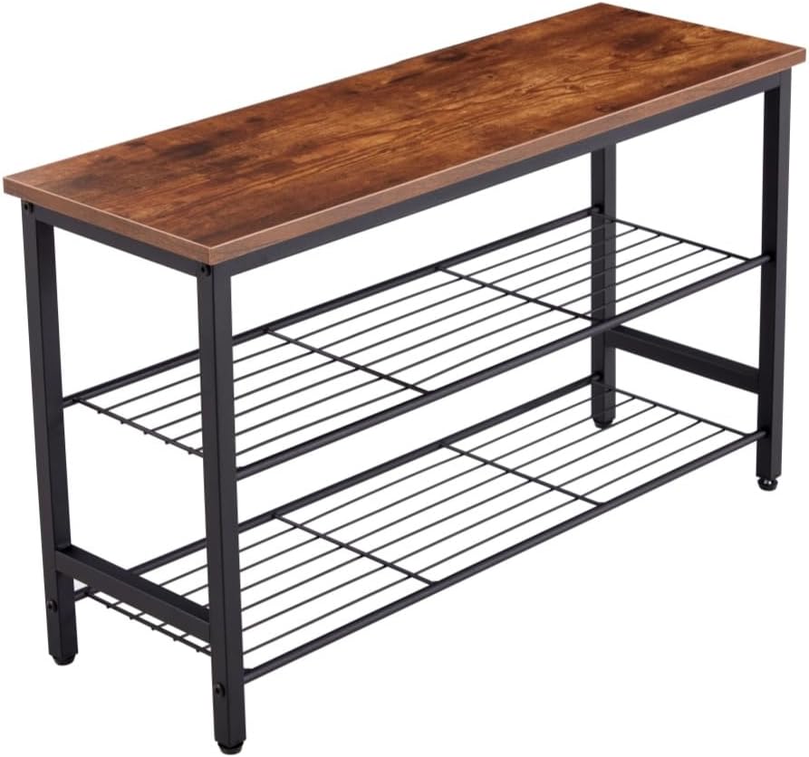 Metal Shoe Rack Shoe Storage Shelf Shoe Stand,Shoe Bench with MDF Top Board Industrial Entryway Bench with Storage Shelves Freestanding Storage Shelf for Bedroom Closet Entryway (3Tie)
