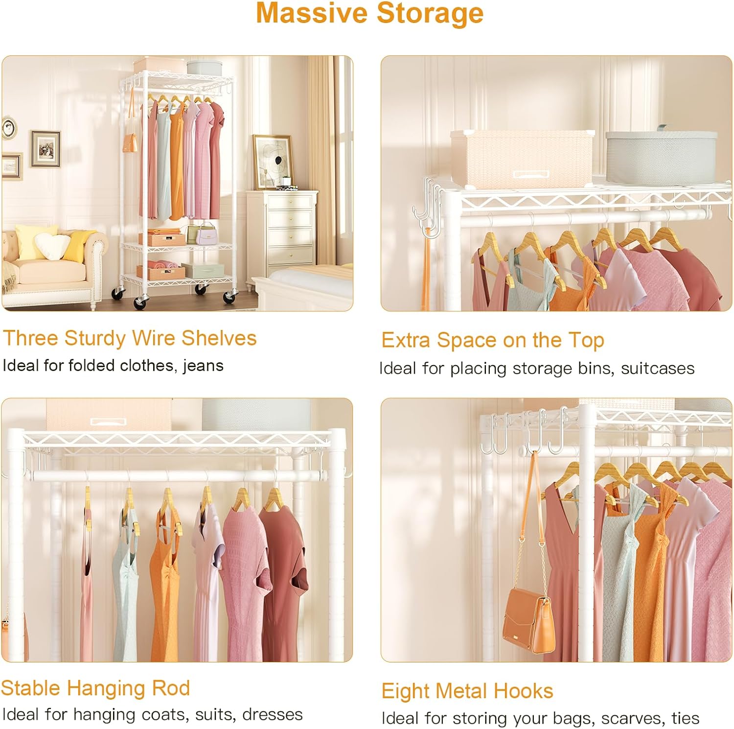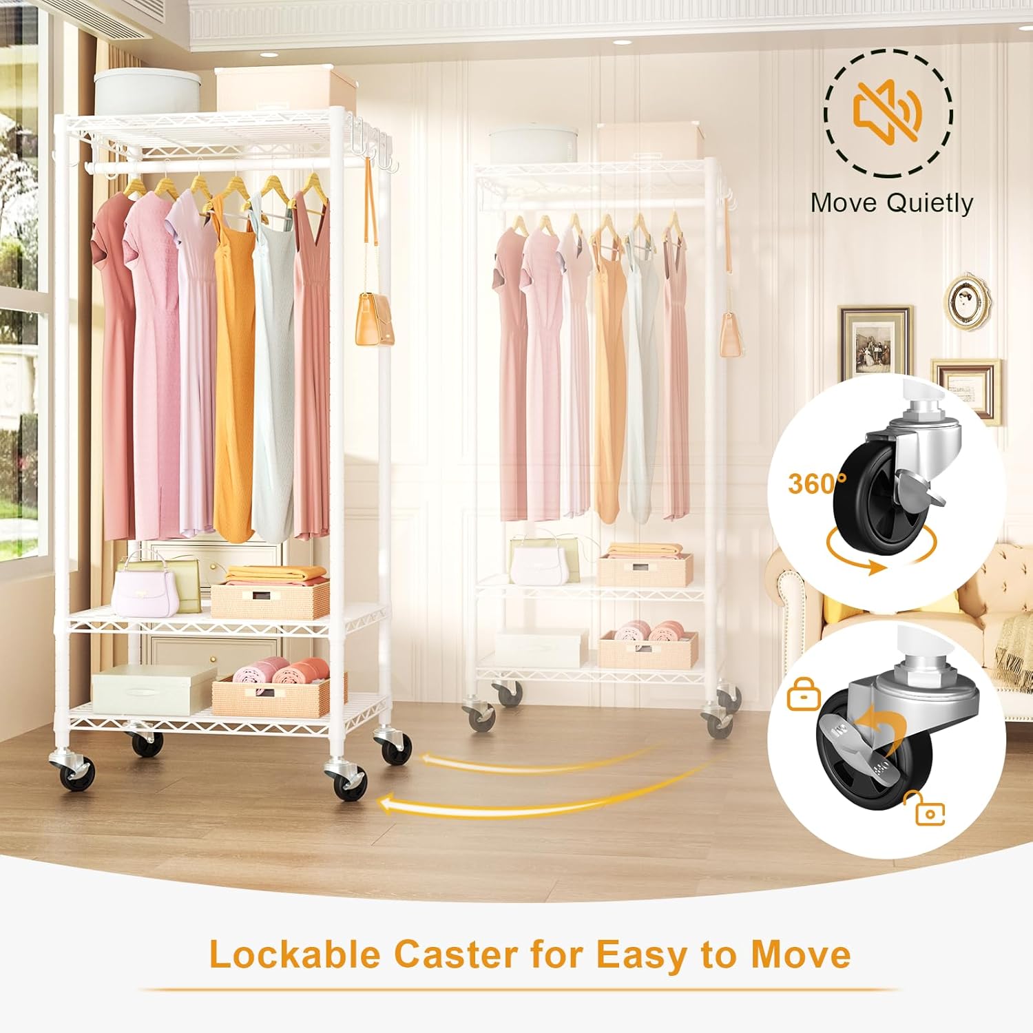P6 Mini Rolling Clothes Rack Heavy Duty, Clothing Racks for Hanging Clothes, Freestanding Garment Rack with Wheels, Portable Closet Rack Max Load 360LBS, 23.6''W x 14''D x 74.6''H, White