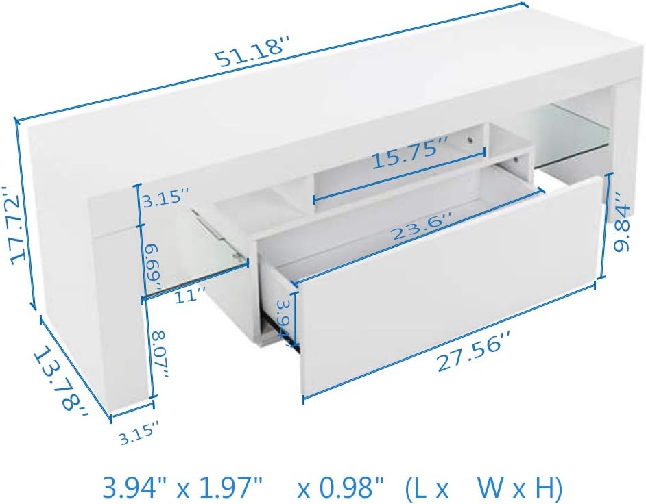 Modern TV Stand with LED Lights, High Gloss Television Stand Entertainment Center Console Table for Living Room, for 52" TV (White)