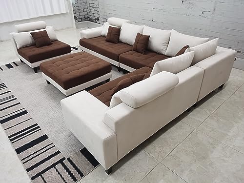 Stendmar Large 5-PieceL shape Living Room/Family Room Reversible Contemporary High Back Support Grey Microfiber Fabric Sectional Couch Sofa Set S150D20