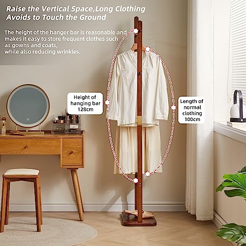 Coat Rack Tree Stand with Very Sturdy Base, Freestanding Small Clothes Rack Heavy Duty, Garment Hanging Racks for Kids and Adults, Space Saving Brown USYD-203
