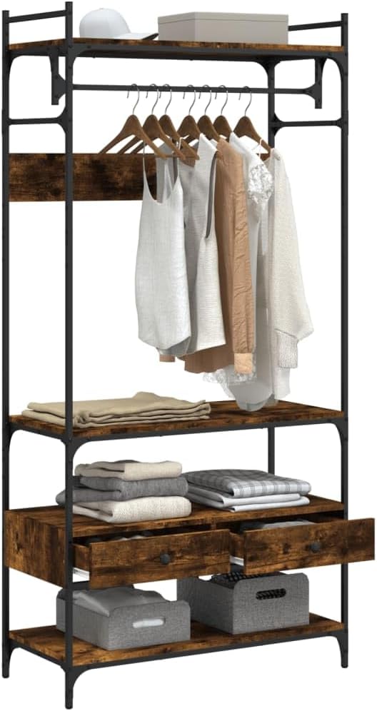 Wardrobe with Drawers Smoked Oak 35"x15.4"x72.6" Engineered Wood D319033C