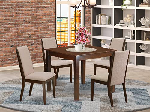 East West Furniture Oxford 3 Piece Room Furniture Set Contains a Square Dining Table and 2 Shitake Linen Fabric Upholstered Chairs, 36x36 Inch, OXLA3-LWH-06