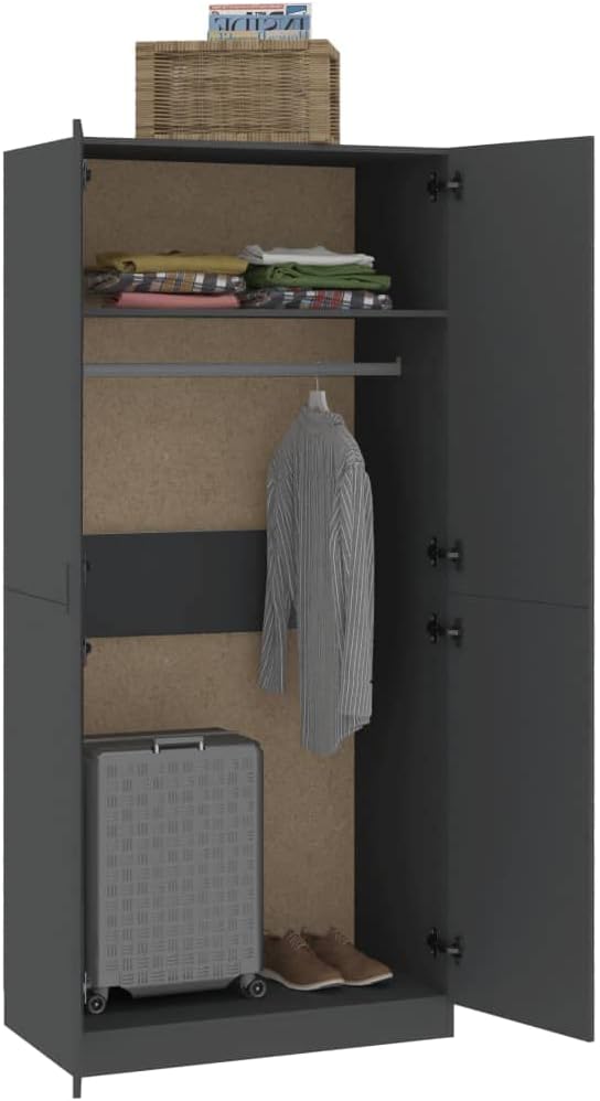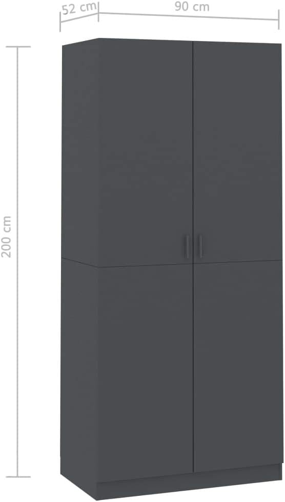 Wardrobe Grey 90x52x200 cm Engineered Wood.Cabinets & Storage,Cupboards & Wardrobes