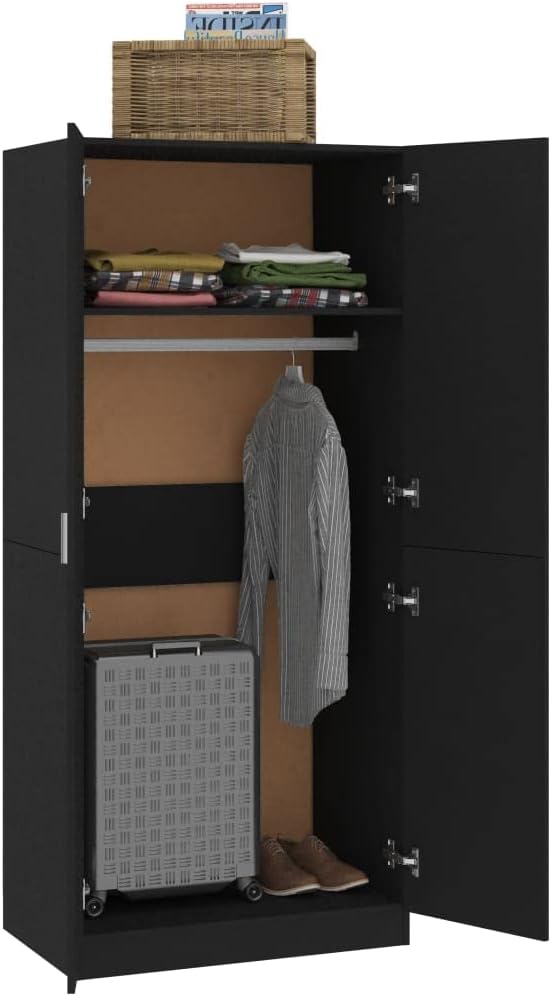 Wardrobe Black 80x52x180 cm Engineered Wood.Cabinets & Storage,Cupboards & Wardrobes