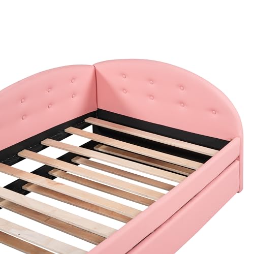 Harper & Bright Designs Full Daybed with Storage,PU Upholstered Tufted Daybed with 2 Drawers and Cloud Shaped Guardrail, Modern Full Storage Bed Sofa Daybed for Bedroom, Living Room,Pink
