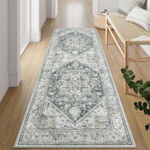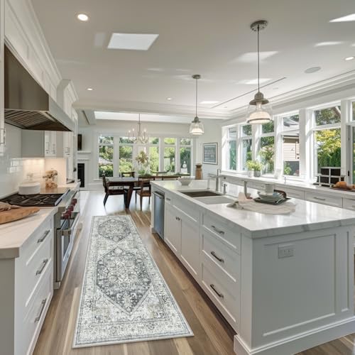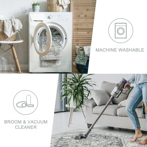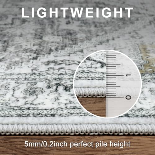 LIVEBOX Washable 9x12 Area Rugs, Large Rugs for Living Room Boho Soft Non-Slip Rug, Low-Pile Vintage Medallion Rug, Retro Indoor Rugs for Dining Room Bedroom Office Sage Green