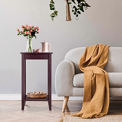 Giantex 2-Tier End Table Tall Set of 2 Nightstand, Simple Design Sofa Bedside Table with Versatile Shelf and Wooden Legs for Small Spaces, Living Room, Study, Bedroom, Narrow Telephone Table, Black