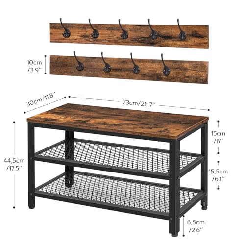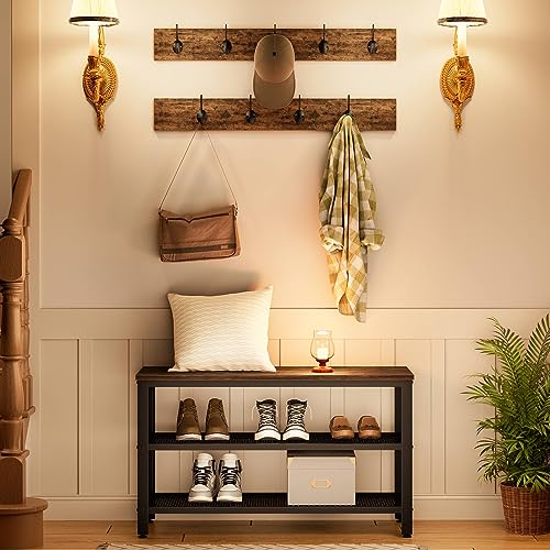 HOOBRO Hall Tree Entryway Storage Bench, Coat Rack Shoe Bench, Shoe Rack Organizer with Coat Hooks, 3-in-1 Design, Wooden Furniture with Metal Frame, Rustic Brown and Black BF171MT01