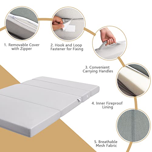 KOMFOTT Mattress 4 Inch Tri Folding Foam Fold Up Floor Camping Mattress Pad Guest Sofa Bed with Removable Cover Portable Sleeping Mattress for Bedroom Guest Dorm Living Room, Blue