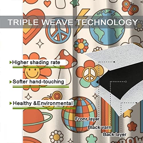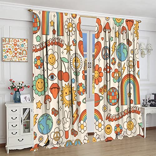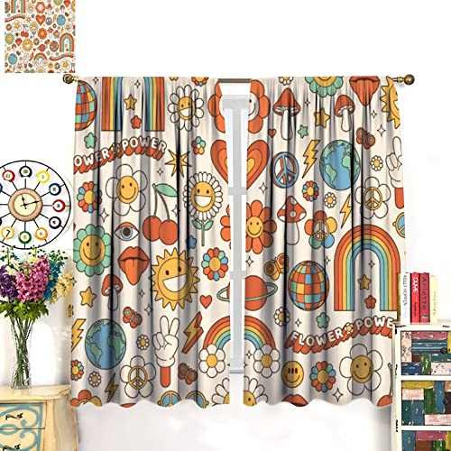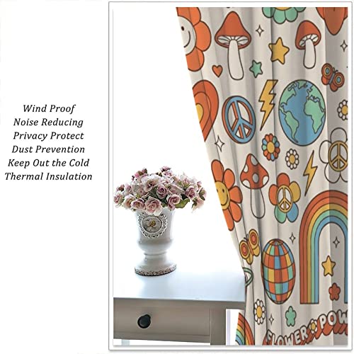 Vintage Abstract Art Curtains 70s Retro Spiral Twirl Orange Pink Colorful Trippy Living Room Bedroom Kitchen Cafe Retro Minimal Colorful Rainbow Blackout Window Drapes 63x72in