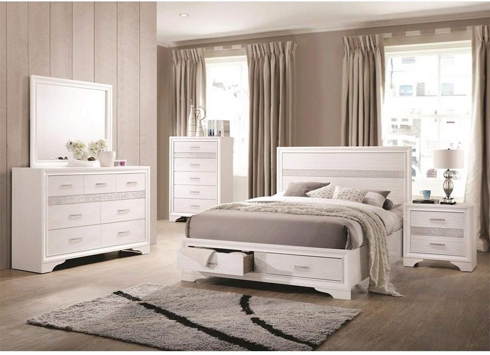 White Asian Hardwood and 3D Paper Foil Veneer Queen Size Storage Bed Bedroom Furniture Modern Footboard 83.75L x 63.5" W x 50" H