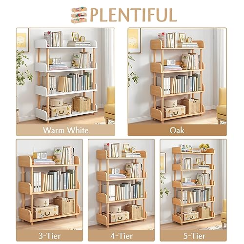 3-Tier Wooden Open Bookcase - Modern Display Bookshelf with Top Edge and Solid Wood Frame for Home and Office, Storage Cabinet, Oak