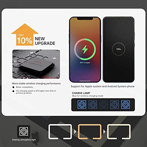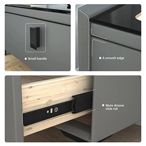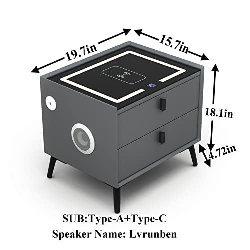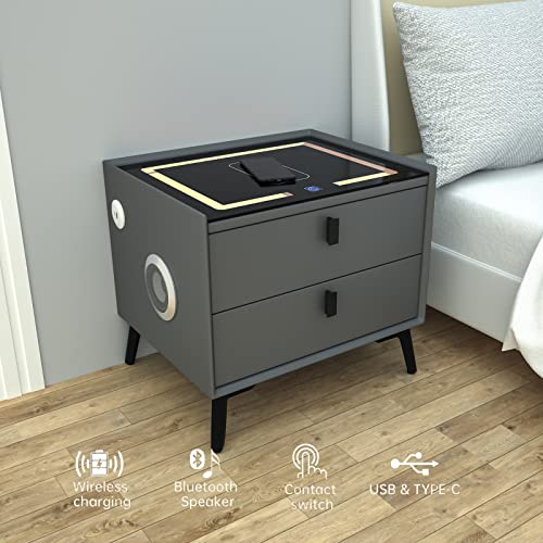Smart Nightstands with Wireless Charging Station, USB Port, Modern Nightstands with 3 Color LED Lights and Speaker, Wooden End Side Table for Bedroom, Dorm, 2 Storage Drawers