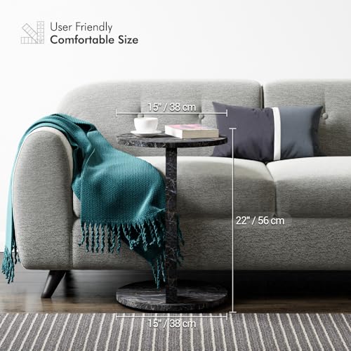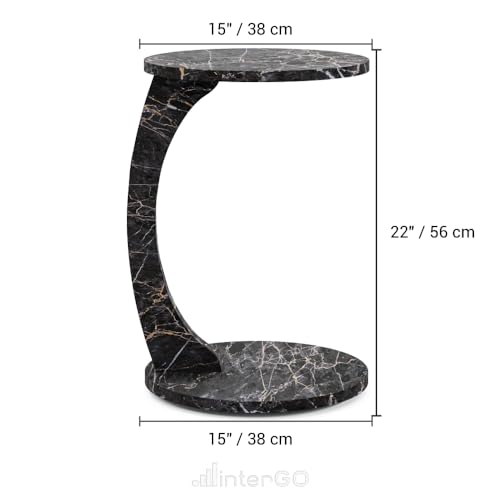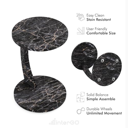 C-Shaped Round End Table with Rolling Wheels - C-Type - Side Table Modern Design - Space-Saving Home Decor End Table for Living Room (Brown)