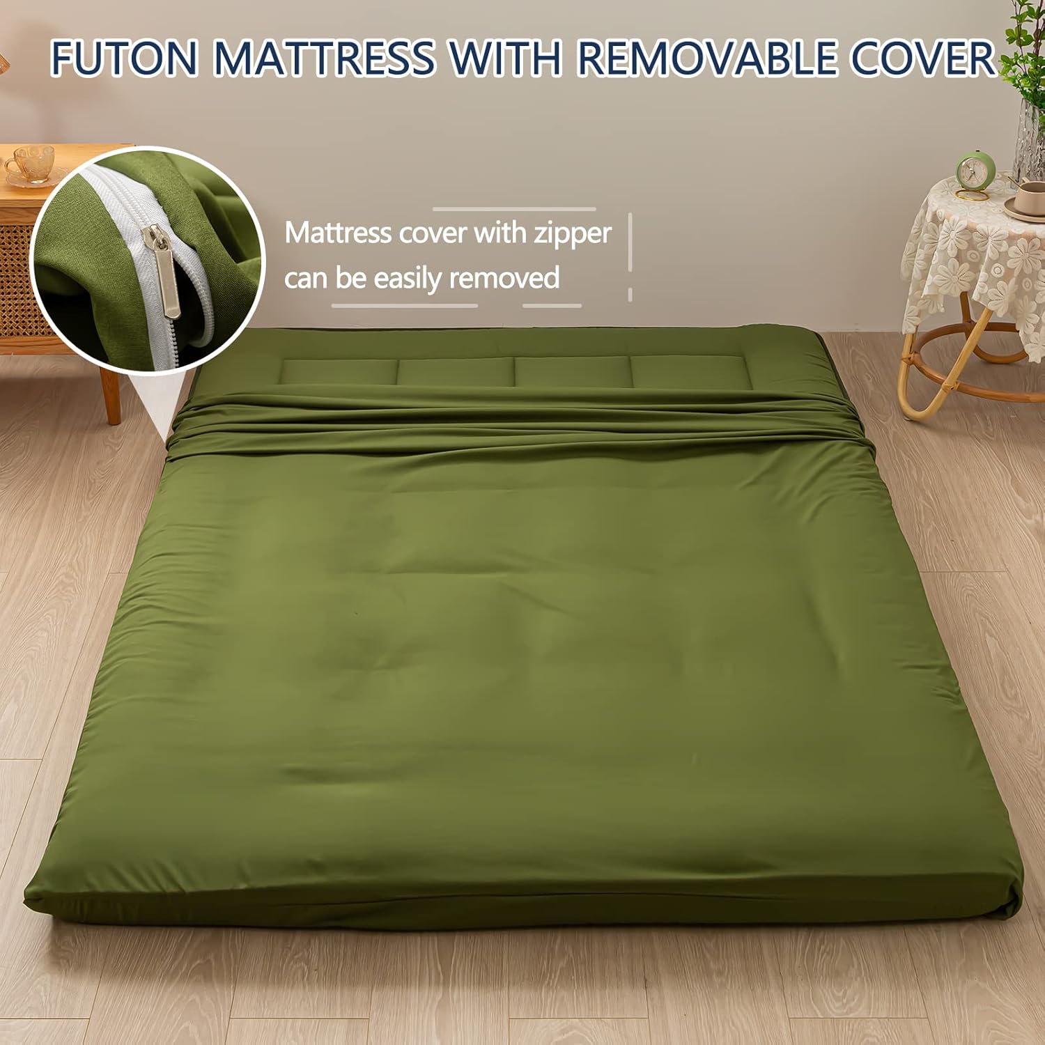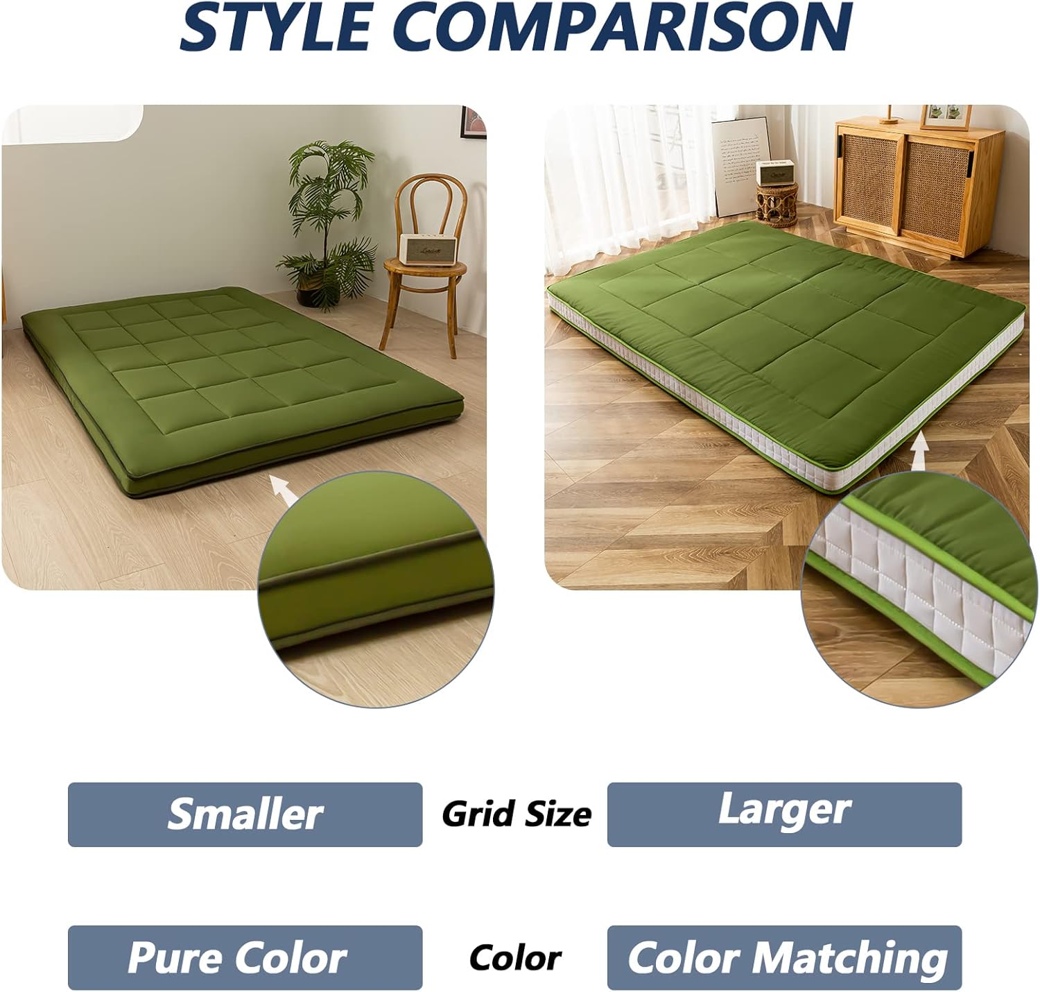 MAXYOYO Japanese Futon Mattress Queen Mattress Roll Up Mattress Floor Bed Floor Mattress for Adults Grid Foldable Mattress for Floor Plaid Checkered Guest Bed Camping Queen Bed Mattress Pad, Green