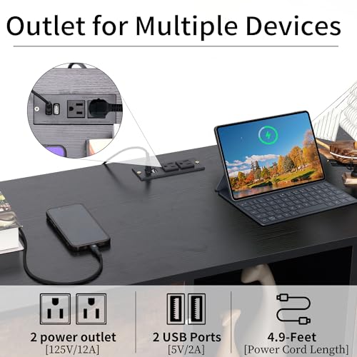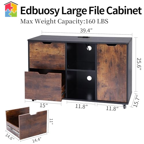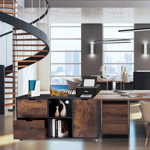 Large File Cabinet, Mobile Lateral Filing Cabinet with Charging Station for Home Office, Wood Printer Stand with Storage Drawers, Fits Letter/Legal/A4 Size File, All Black