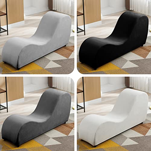 CECER Yoga Chair,Curved Chaise Lounge for Stretching Relaxing Exercising,Modern Lounge with Thicker Chair Legs,Velvet Fabric for Indoor Living Room-Dark Grey