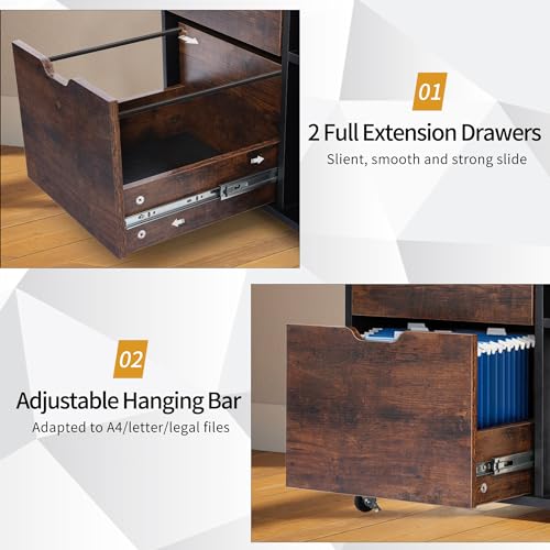 5 Drawers File Cabinet, Vertical Filing Cabinet for Home Office, Mobile Under Desk Office Storage Cabinet with Wheels, Modern Chest of Drawers for Bedroom (Black, 5 Drawers)