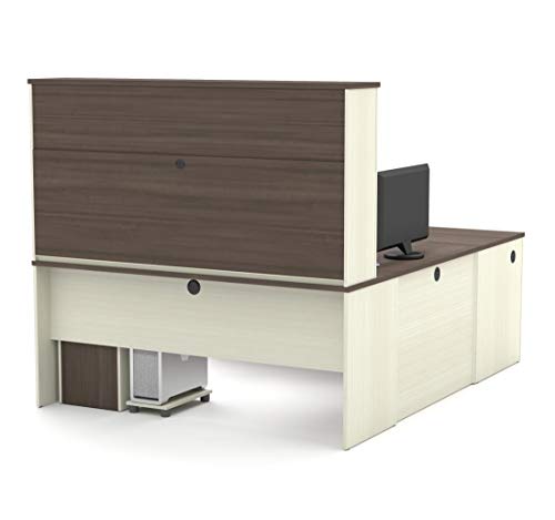Bestar Prestige + U-Shaped Executive Desk with 2 Pedestals and Hutch, 72W, White Chocolate & Antigua