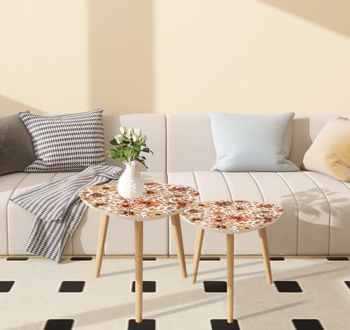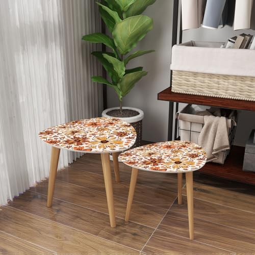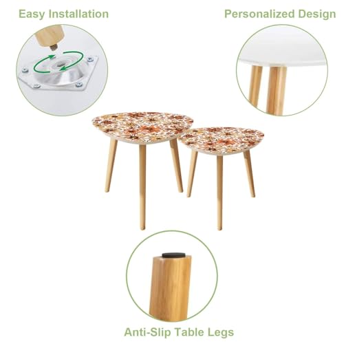 Triangle Nesting Coffee Table Set of 2 Japanese seamless pattern crane birds elements Asian oriental Modern Minimalist Side Table Small End Table Leisure Tea Table Living room Bedroom Office