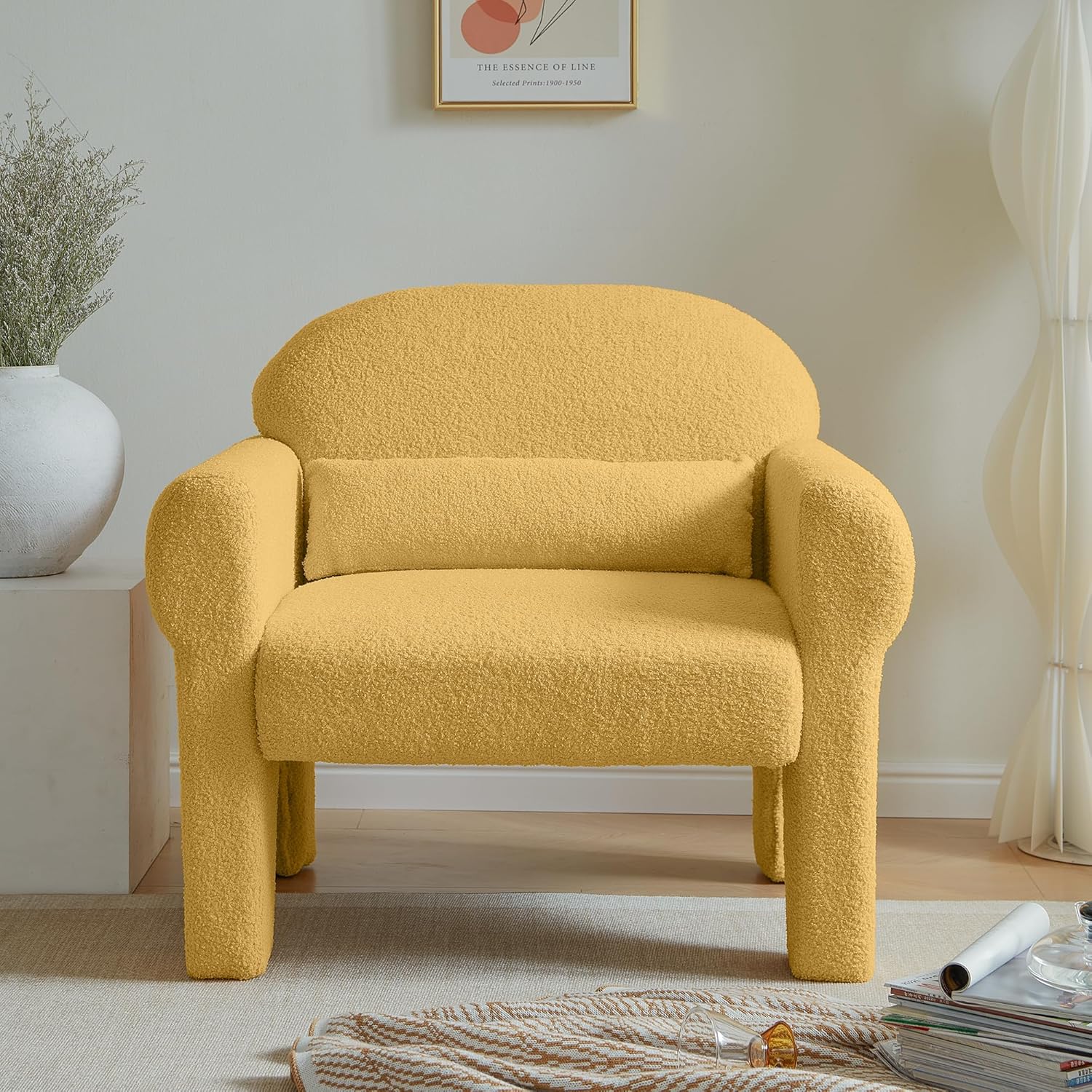 Mid Century Modern Accent Chair,Lambs Wool Fabric Sofa Chair for Living Room Armchair Comfy Reading Chair, Lounge Side Chair for Bedroom,Apartment,Studio,Easy Assembly 34.3" L x 29.5" W x 31.1" H
