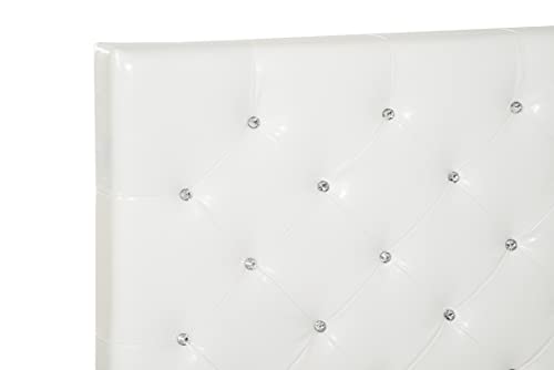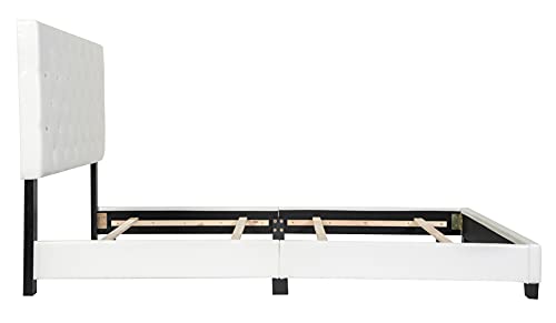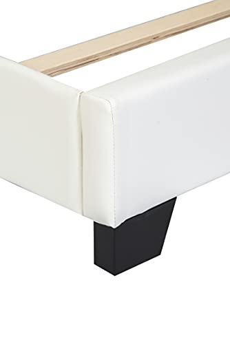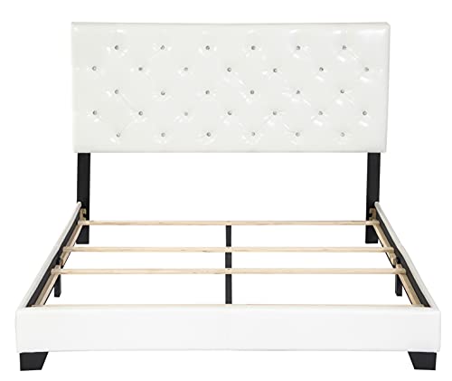 Upholstered Queen Bed Frame with Headboard, Diamond Button Tufted Faux Leather, Wood Slats Included, Easy Assembly, Box Spring Platform Needed, Works with Memory Foam Mattress, Queen White