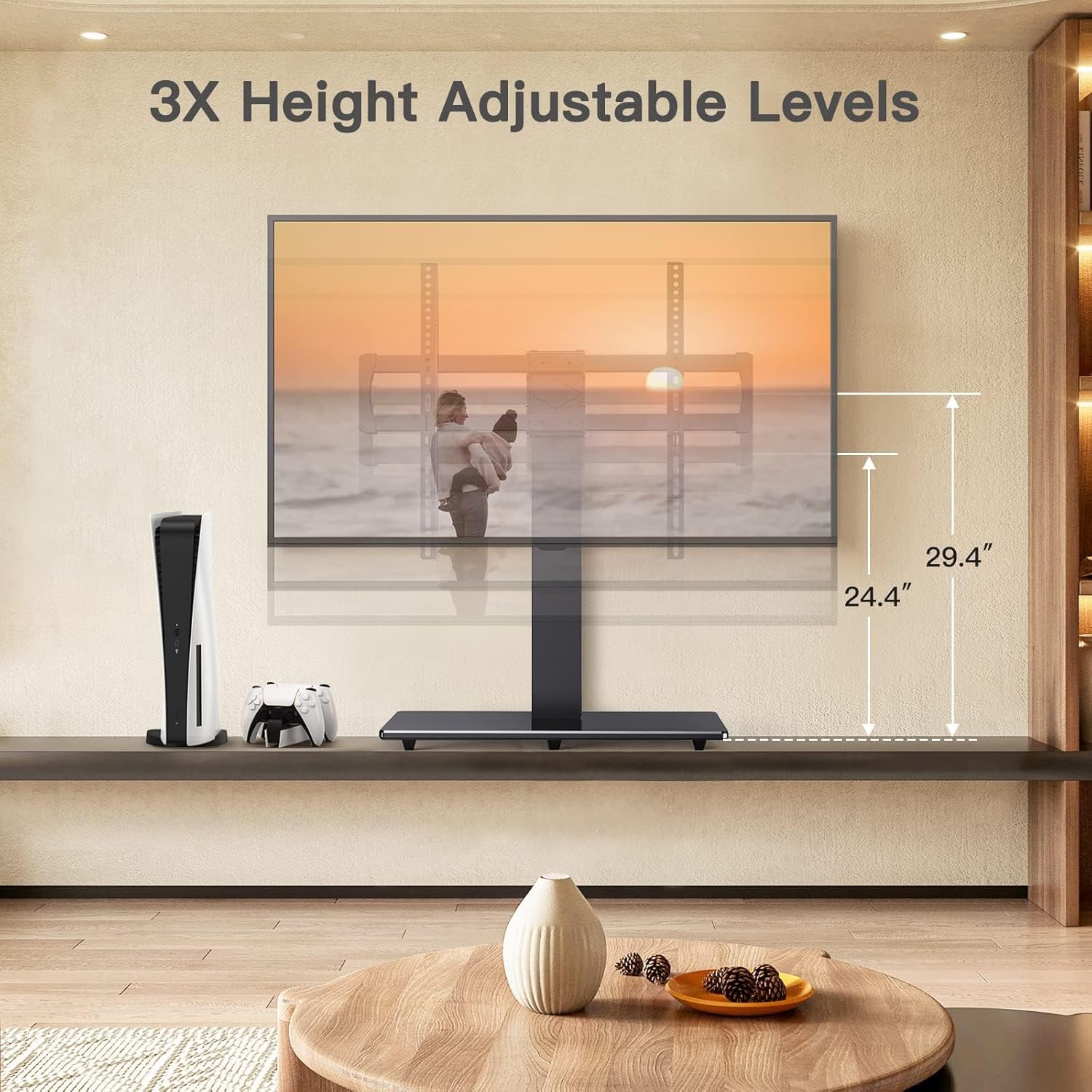 Swivel Universal TV Stand Base for 50-75 Inch LCD OLED Flat/Curved Screen TVs-Height Adjustable/Tall/Larger Table Top TV Stand Mount, Center TV Stand with Cable Management, VESA 800x400mm