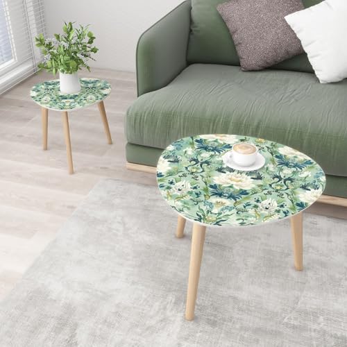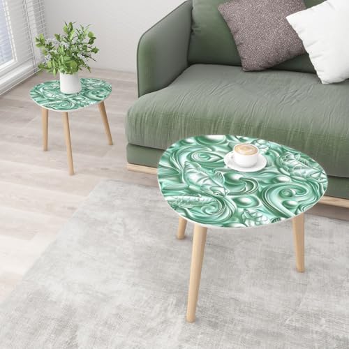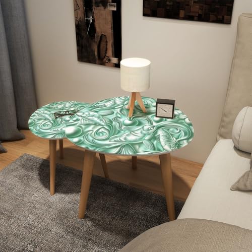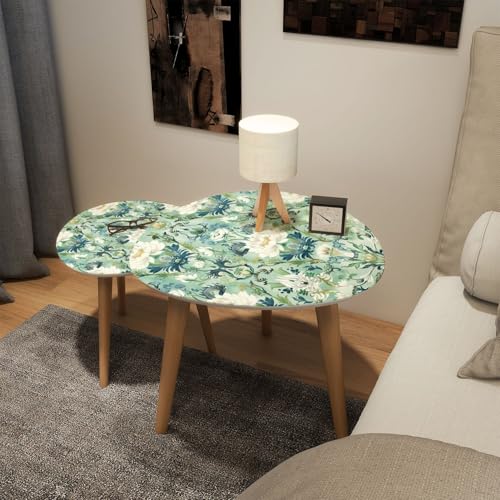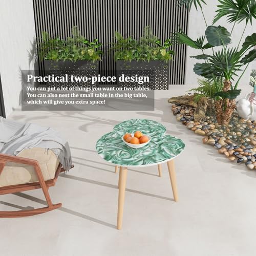 Small Coffee Nesting Table East Asian Celadon Pattern Floral Motifs Mythical Creatures Triangle End Table Center Table Set of 2 Modern Side Table for Living Room Bedroom Balcony