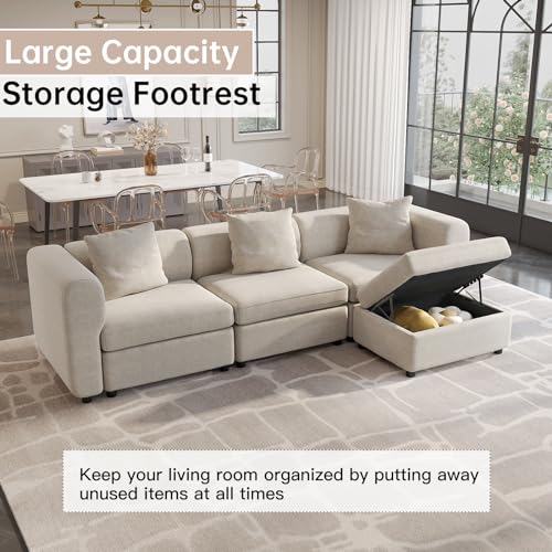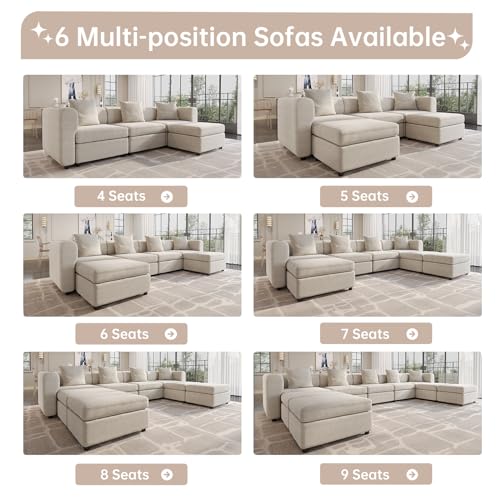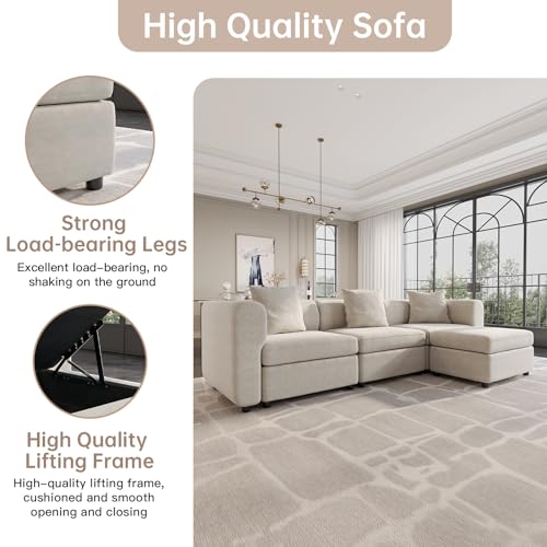 Velvet Sectional Sofa, Modern Oversized Loveseat Sofa with 2 Pillows, Convertible Sofa with Cushions, 2-Seat Sofa for Living Room, Apartment, Home (Blue, 5 Seat (No Ottoman))