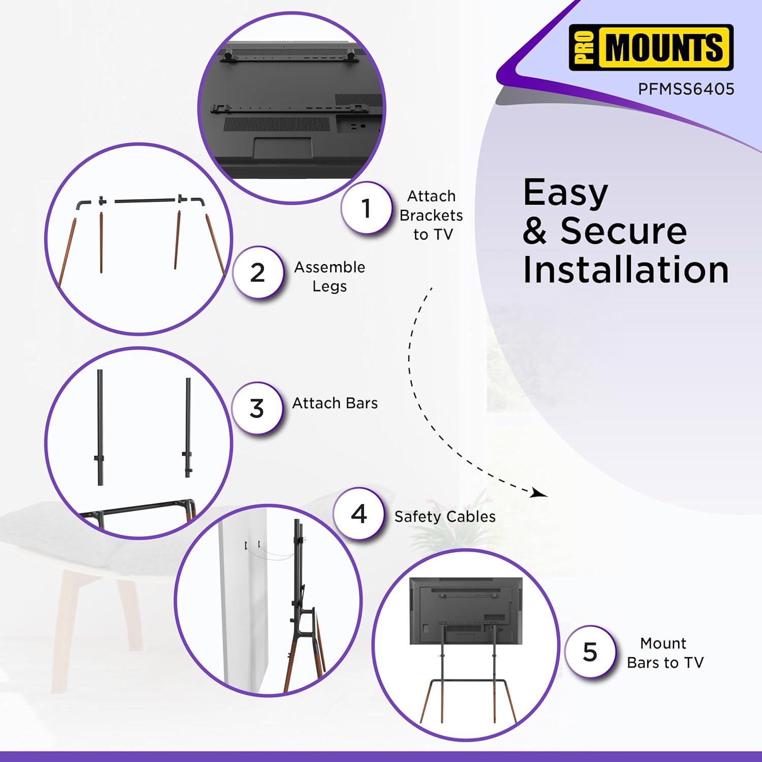 Easel Tv Stand Mount for 42"-84" Tvs and Holds Up to 99lbs Mid-Century Modern Wood Finish