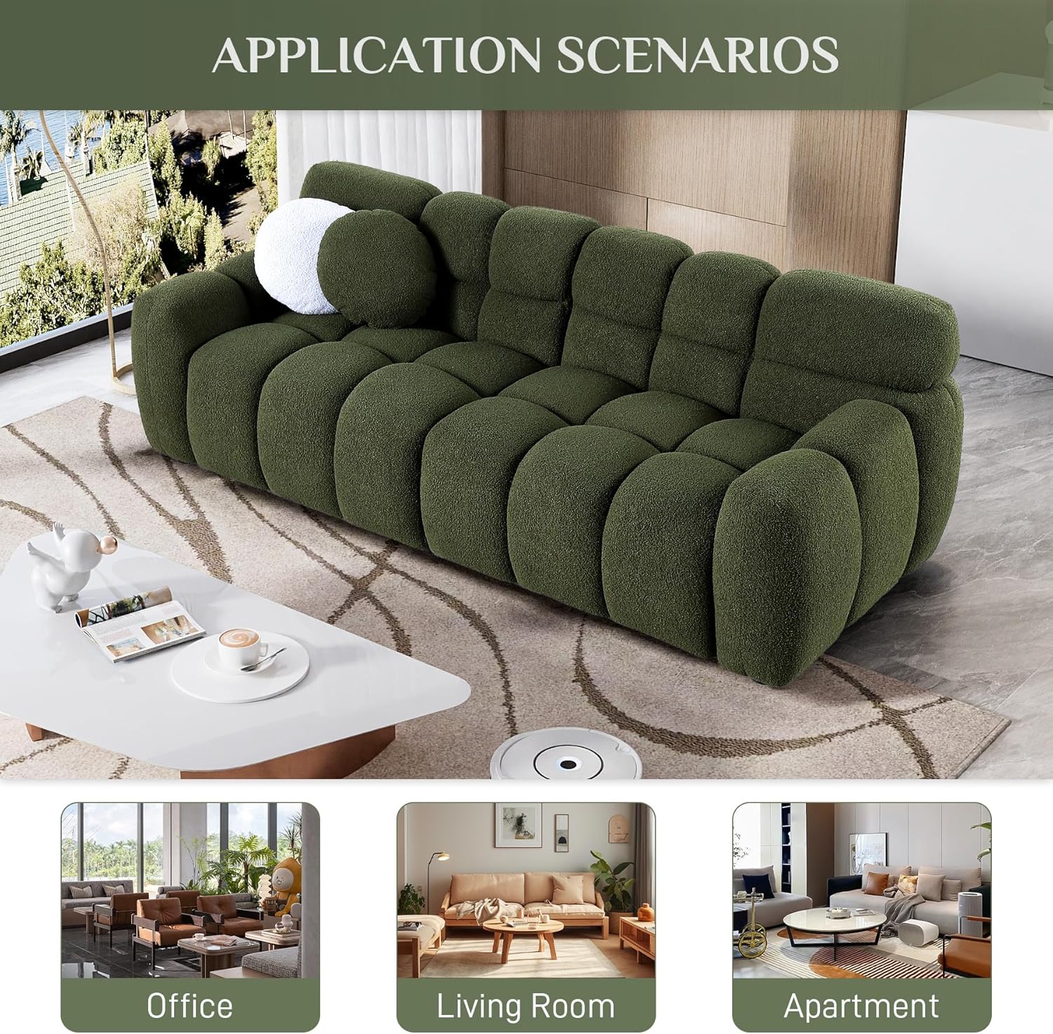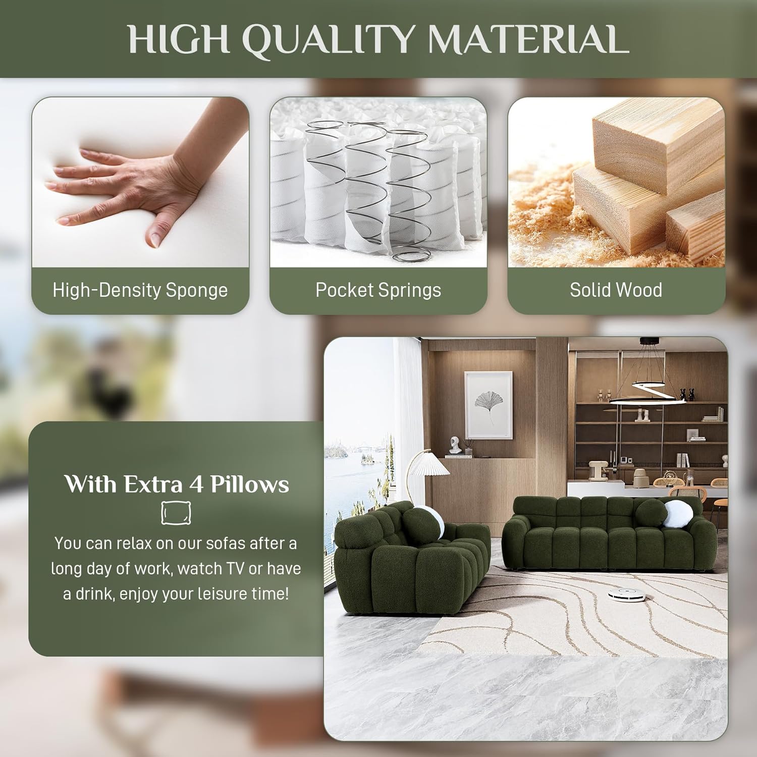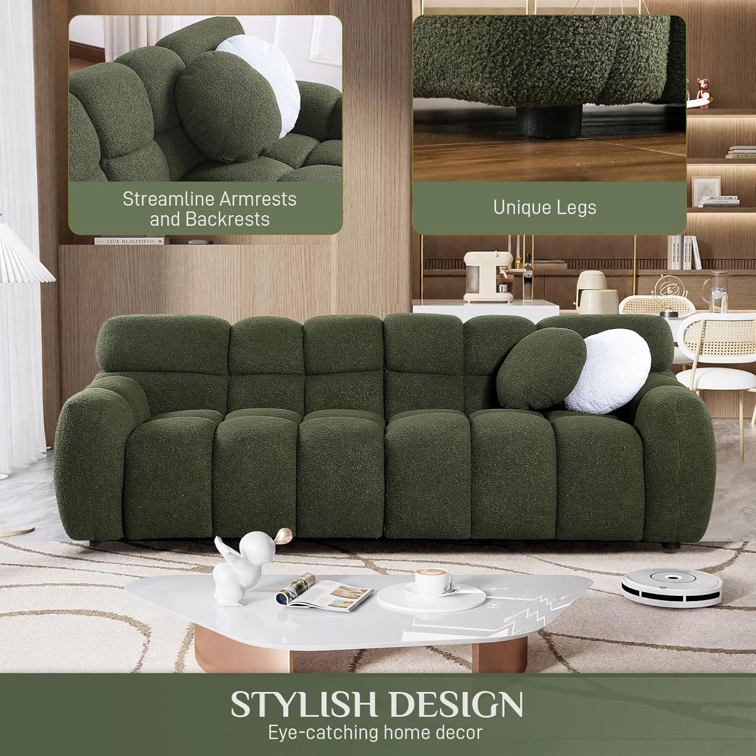 86" Boucle Cloud Sofa Couch Set of 2, Modern Upholstered Couch for Living Room, Tufted Casual Sofa with 2 Pillows, Deep Seat Couch Sofas for Apartment (Green)