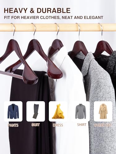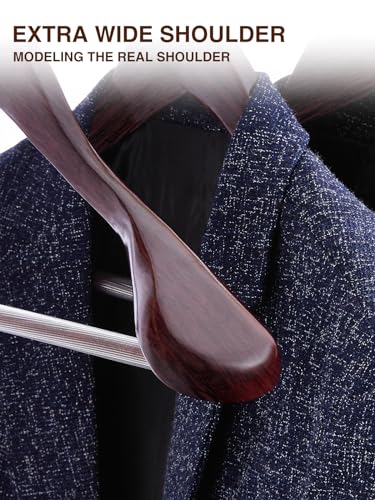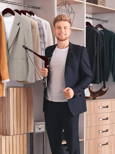 SMARTOR Suit Hangers for Men, 8 Pack - Wide Shoulder Wooden Suit Hangers with Non Slip Pants Holder, Wide Hangers for Suit, Coat, Jacket, Gown, Heavy Duty Wood Suit Hanger - Walnut