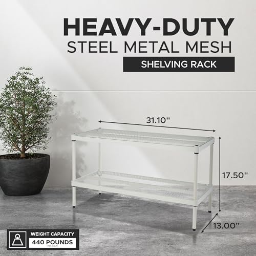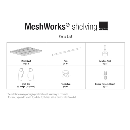 Design Ideas MeshWorks 5 Tier Full-Size Metal Storage Shelving Unit Tower for Kitchen, Office, and Garage Organization, 13.8” x 13.8” x 70.9” White